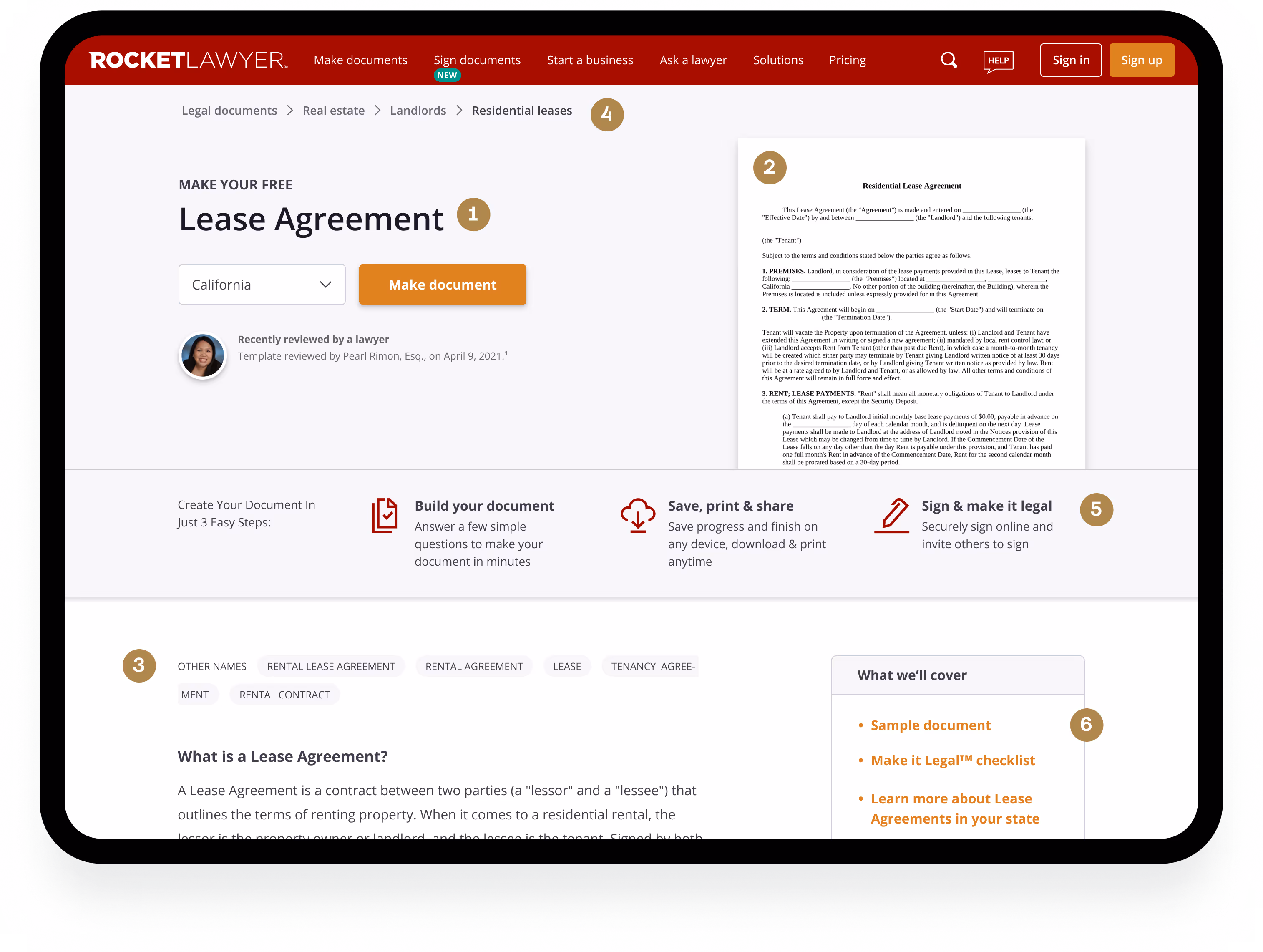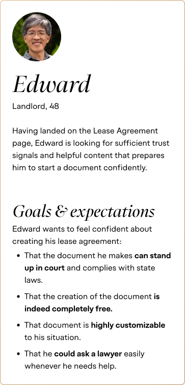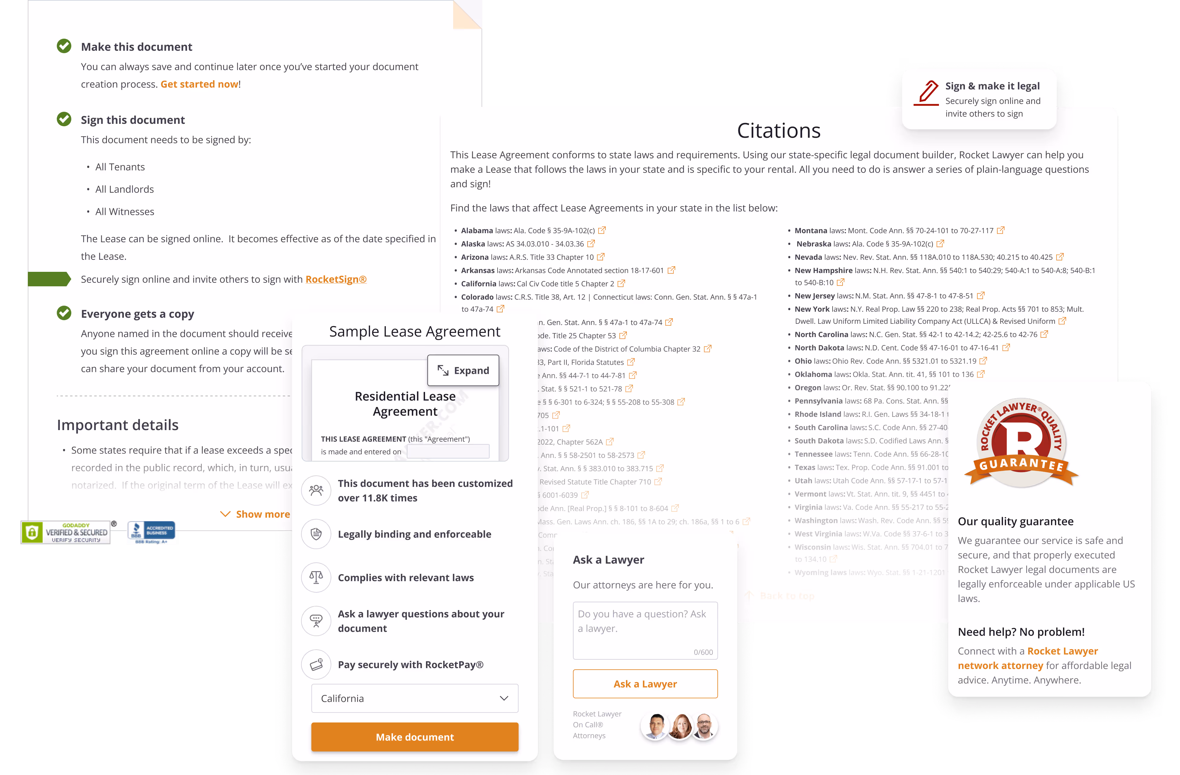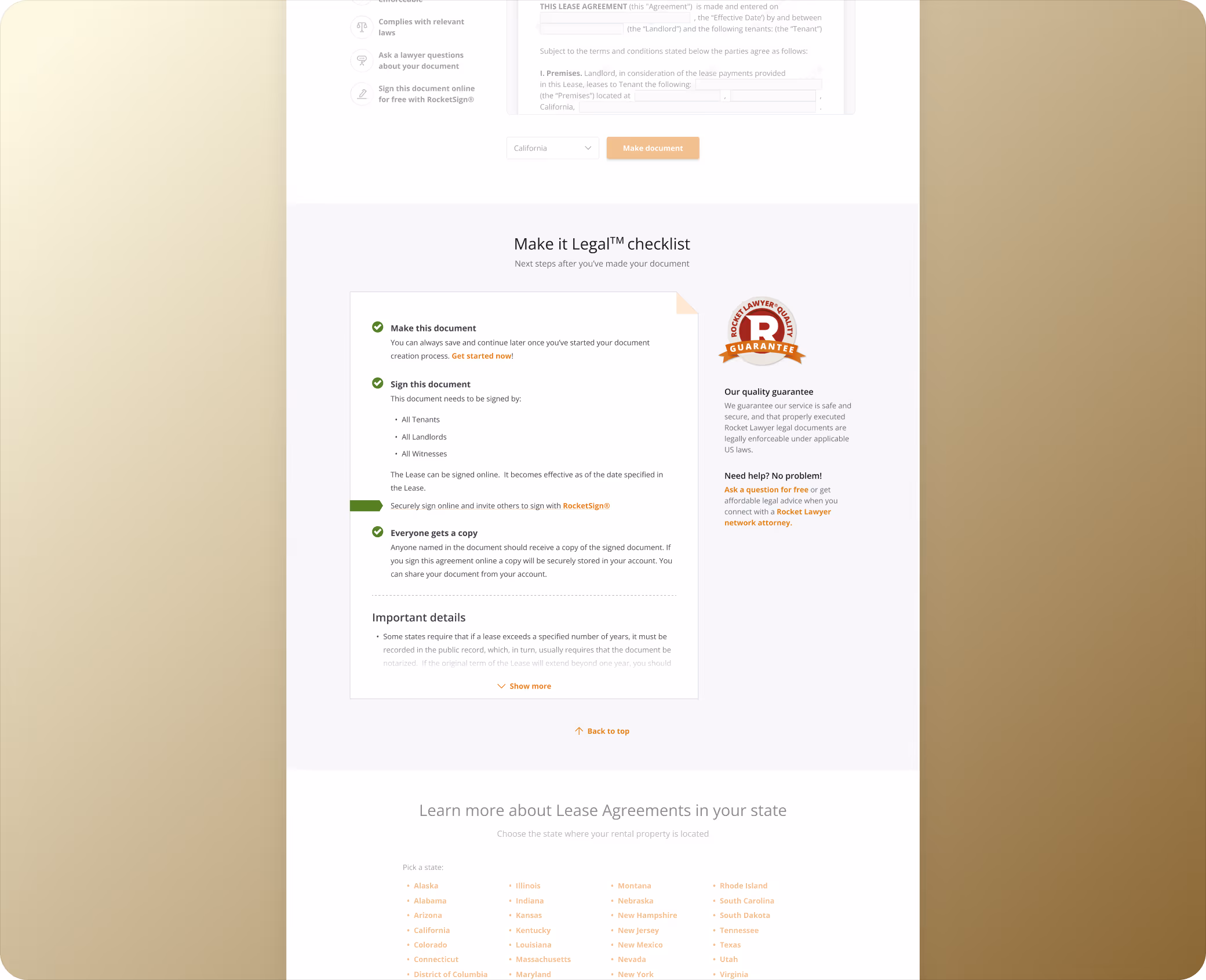 Rocket Lawyer's legal document landing pages were failing and needed a major overhaul that incremental A/B tests couldn't fix. We rebuilt the template around clearer value, deeper content, and a smoother decision path.