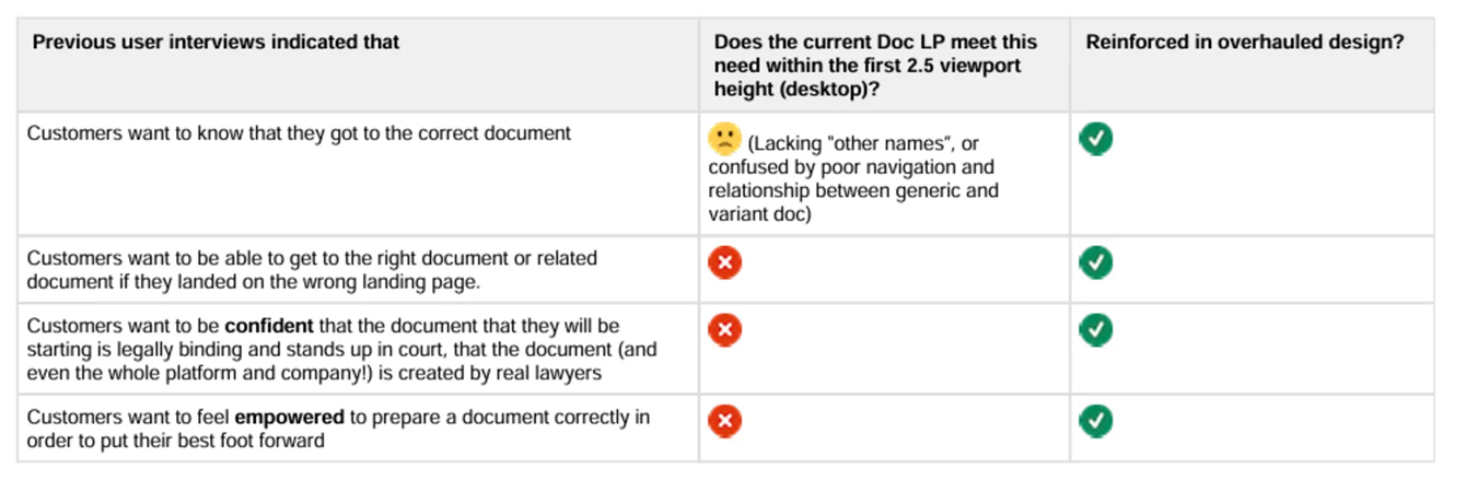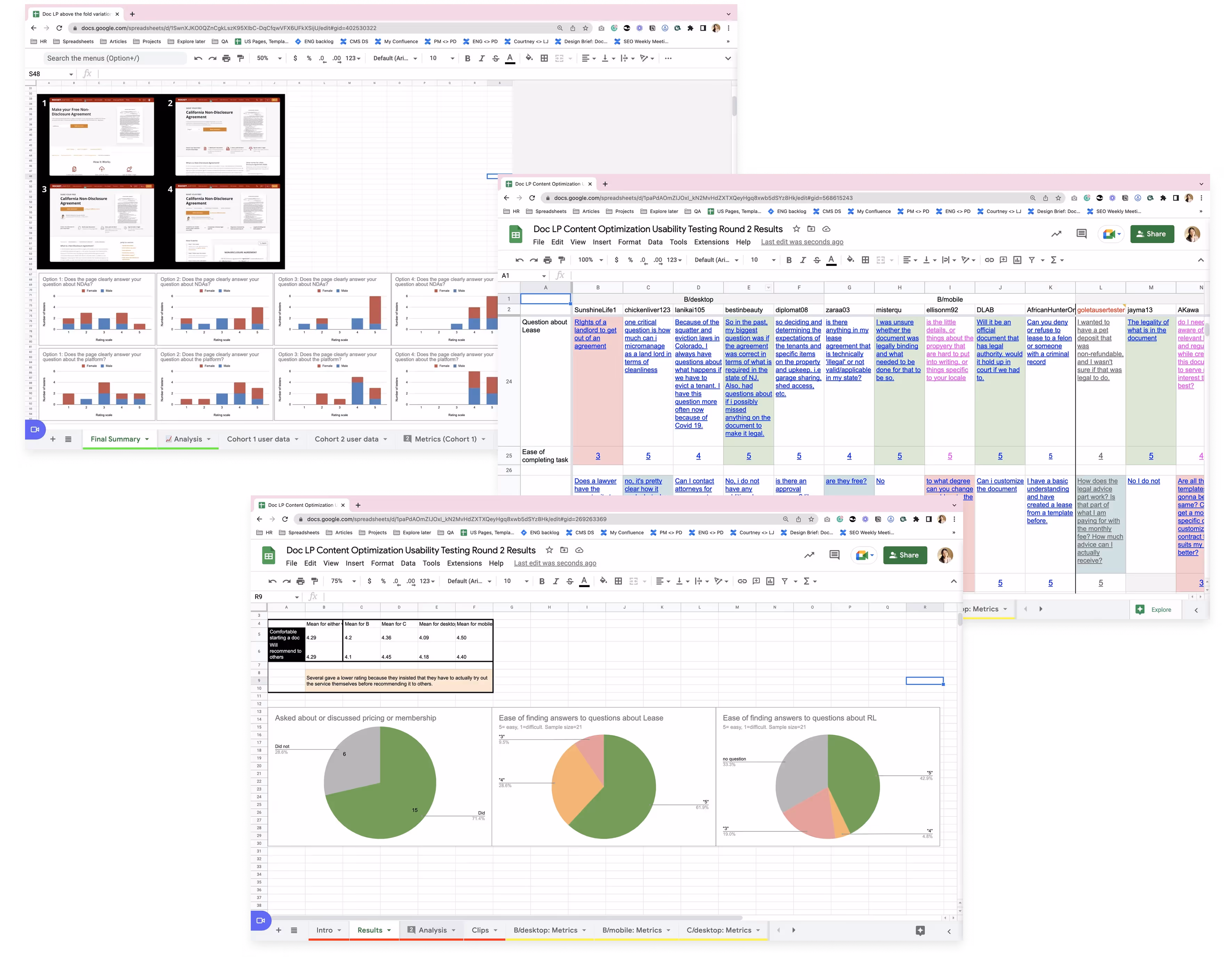 To build team confidence in design decisions, I applied quantitative methods to user testing findings—making insights more objective—and connected UX metrics to product metrics. In Rocket Lawyer's data-driven culture, this approach helped the team feel comfortable moving forward with the final design.